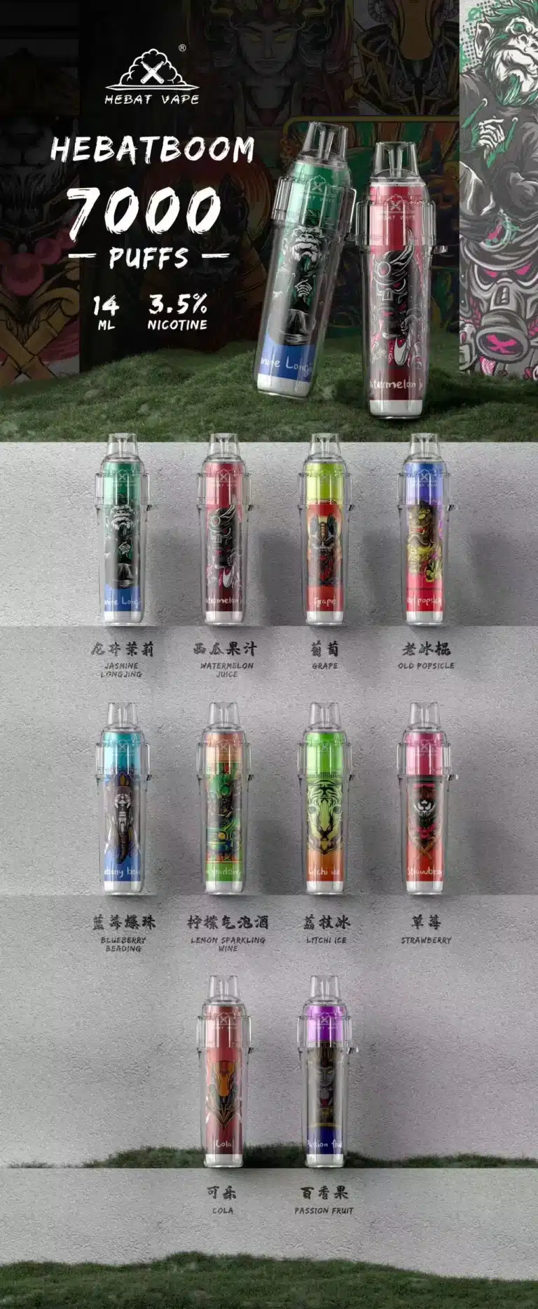 HEBAT BOOM 7000 Puff 電子煙 是喜貝(HEBAT)品牌推出的高續航一次性電子煙代表作。以「大容量油倉 × 穩定霧化 × 真實口感」為核心設計理念,兼具便攜性與高效能,讓使用者隨時隨地享受濃郁又順滑的霧化體驗。
