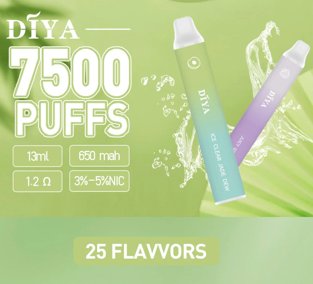 從外觀、性能到口感,每一處都為玩家量身打造。無論是日常替煙、出差旅行或社交場合,一支 Diya 7500 Puff 就能滿足你的霧化需求。