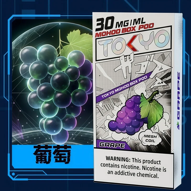 TOKYO MOHOO BOX東京魔盒水果風味煙彈,嚴選日本調製多種鮮果融合香氣,結合水蜜桃、芒果、葡萄等飽滿風味,搭配順滑無刺激的3%尼古丁鹽,專為追求層次口感的玩家設計。煙彈容量12mL,無需注油更換即用,搭配東京魔盒主機可一鍵啟動。